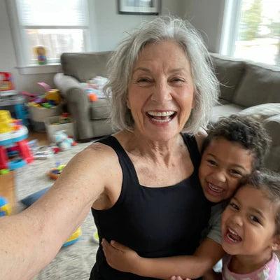 Best day ever with my grandbabies! 💕 So comfortable I can play on the floor all day without my bra killing me. These tanks are a GAME CHANGER! 74 and finally found something that actually supports me!